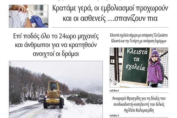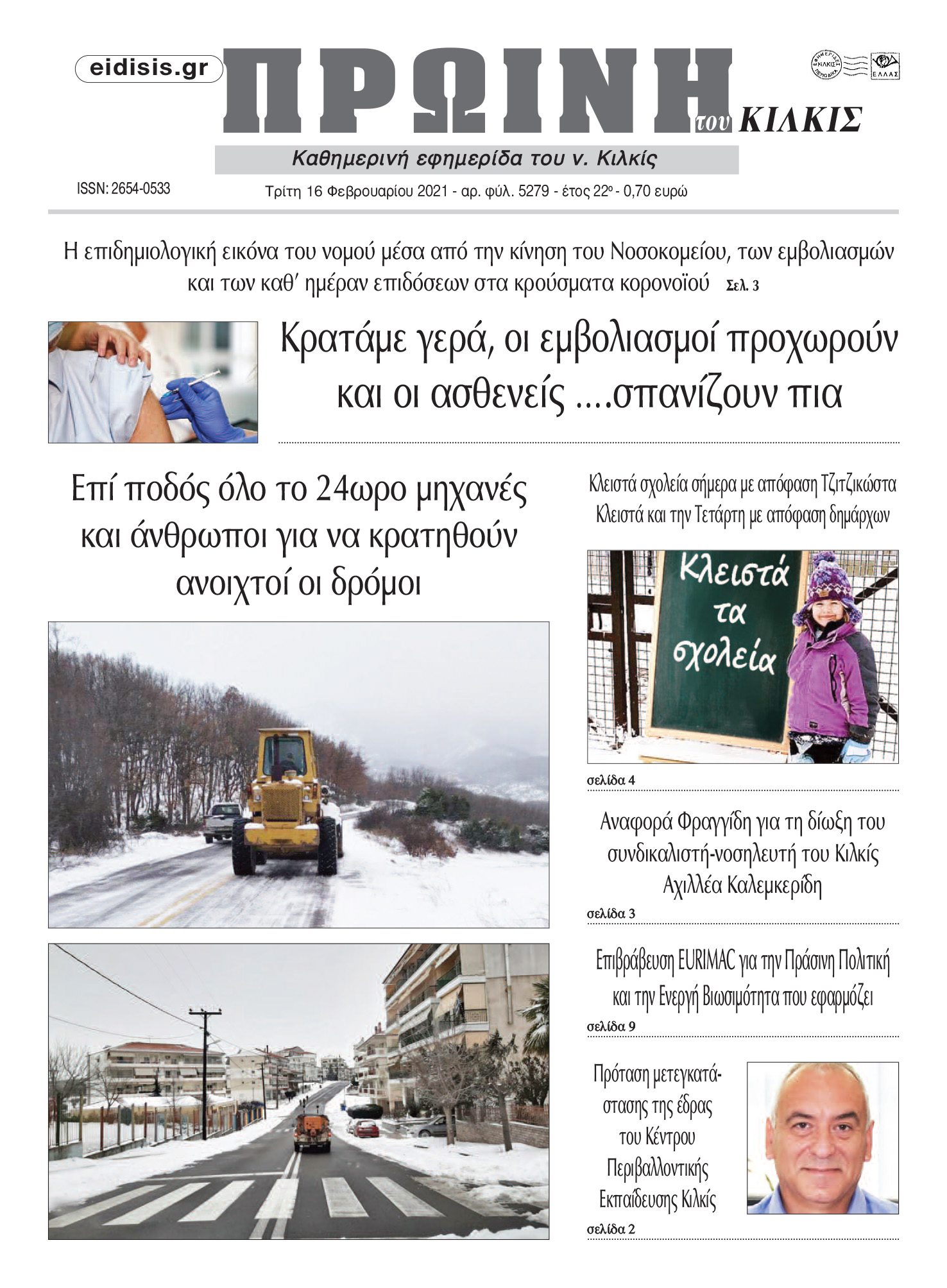 Διαβάστε το νέο πρωτοσέλιδο της Πρωινής του Κιλκίς, μοναδικής καθημερινής εφημερίδας του ν. Κιλκίς (16-2-2021)