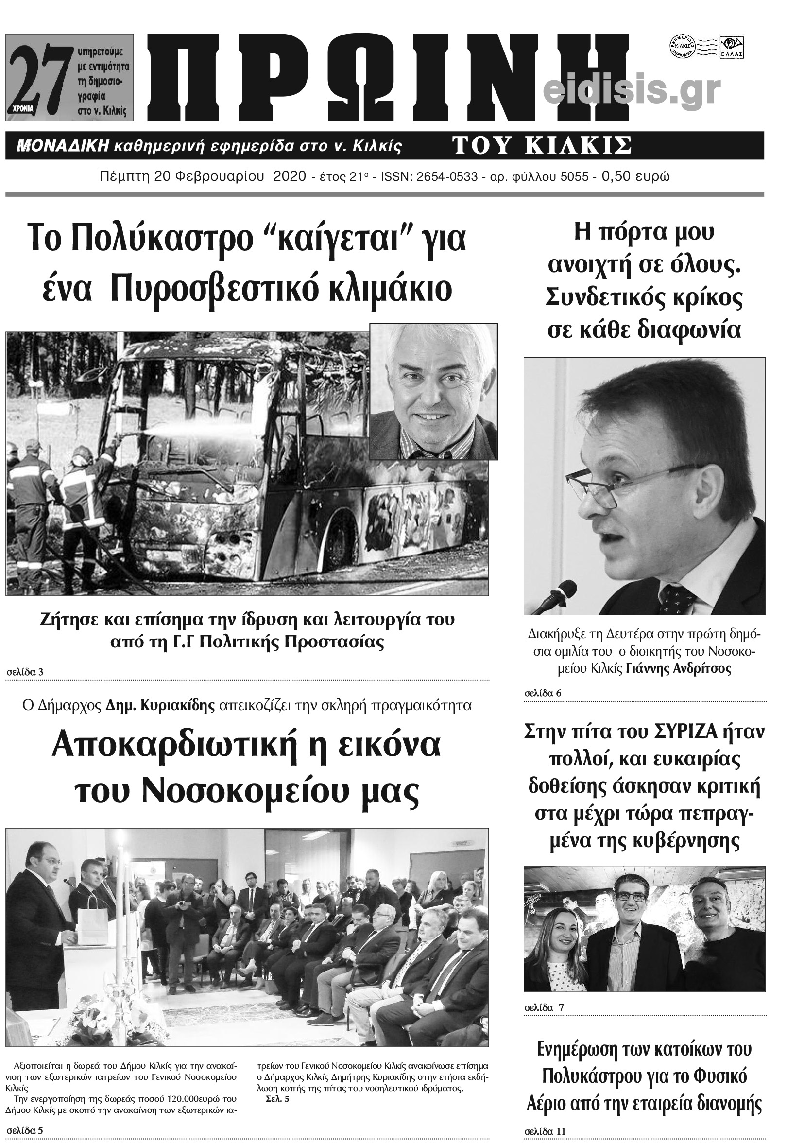 Διαβάστε το νέο πρωτοσέλιδο της Πρωινής του Κιλκίς, μοναδικής καθημερινής εφημερίδας του ν. Κιλκίς (20-2-2020)
