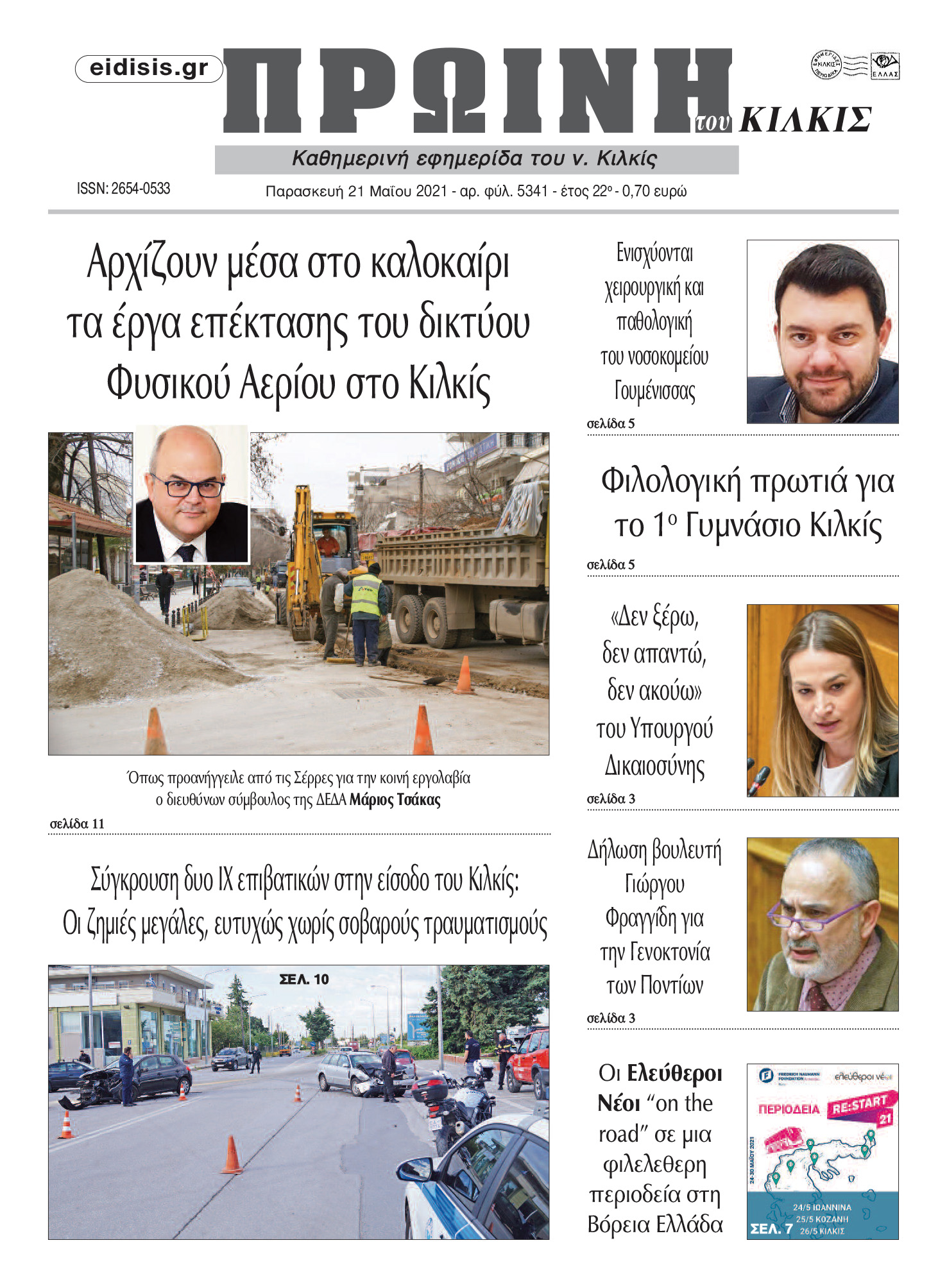 Διαβάστε το νέο πρωτοσέλιδο της Πρωινής του Κιλκίς, μοναδικής καθημερινής εφημερίδας του ν. Κιλκίς (21-5-2021)
