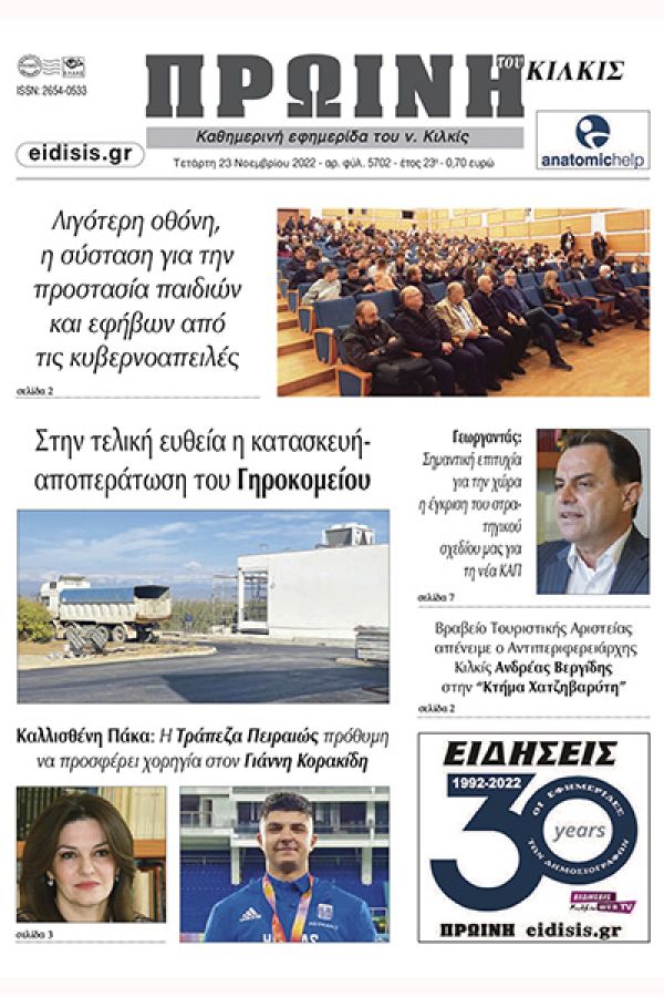 Διαβάστε το νέο πρωτοσέλιδο της Πρωινής του Κιλκίς, μοναδικής καθημερινής εφημερίδας του ν. Κιλκίς (23-11-2022)