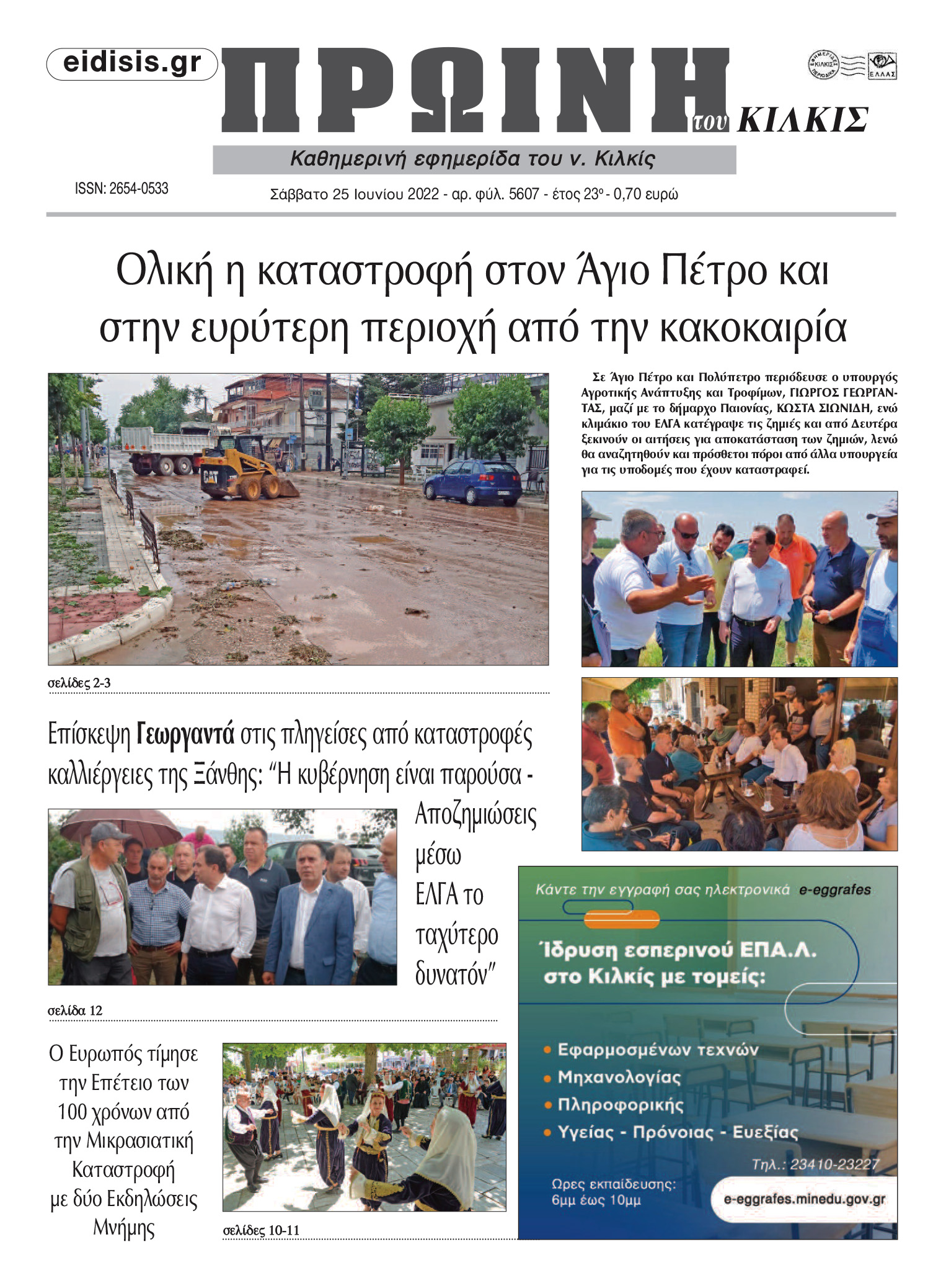 Διαβάστε το νέο πρωτοσέλιδο της Πρωινής του Κιλκίς, μοναδικής καθημερινής εφημερίδας του ν. Κιλκίς (25-6-2022)