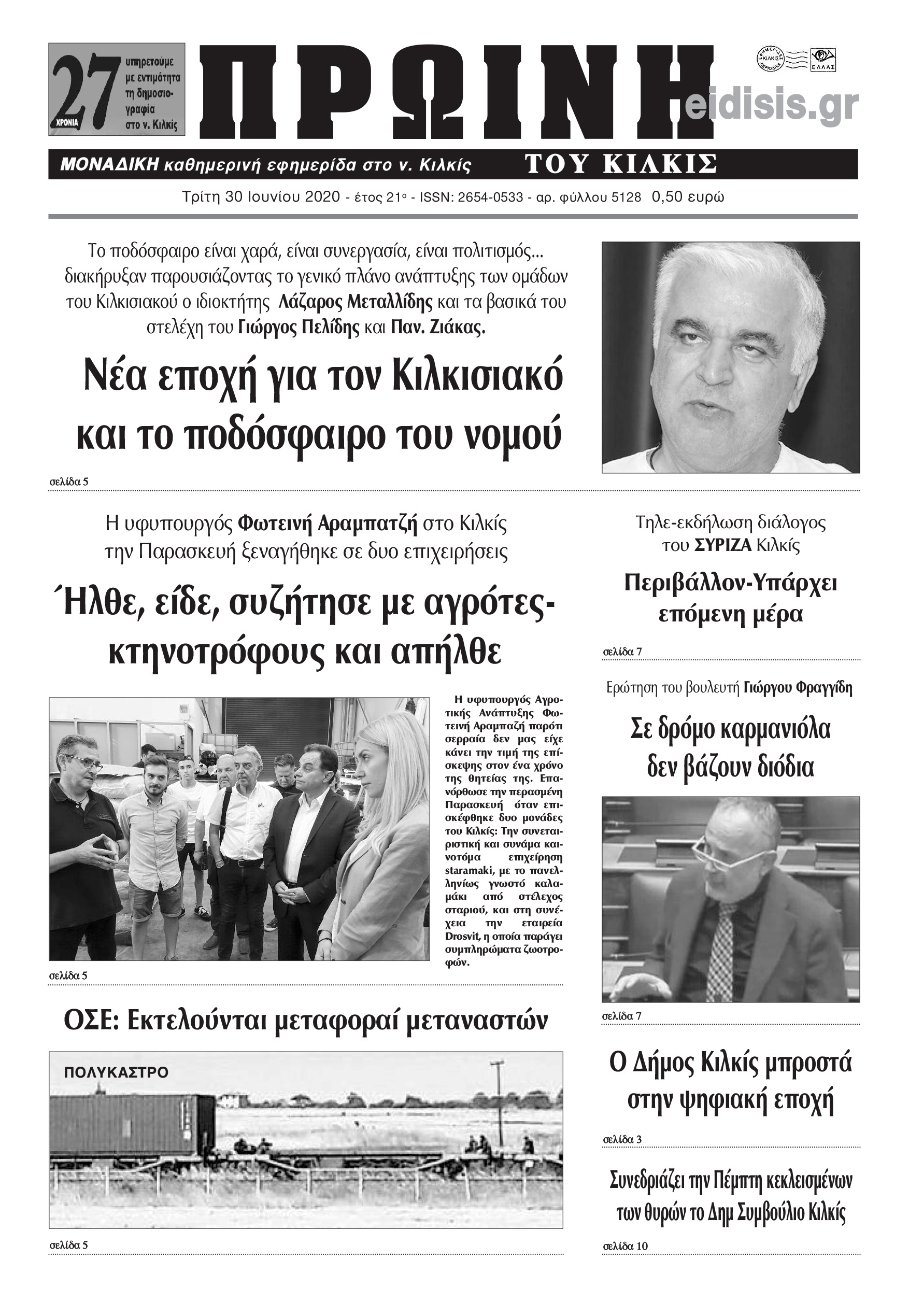 Διαβάστε το νέο πρωτοσέλιδο της Πρωινής του Κιλκίς, μοναδικής καθημερινής εφημερίδας του ν. Κιλκίς (30-6-2020)
