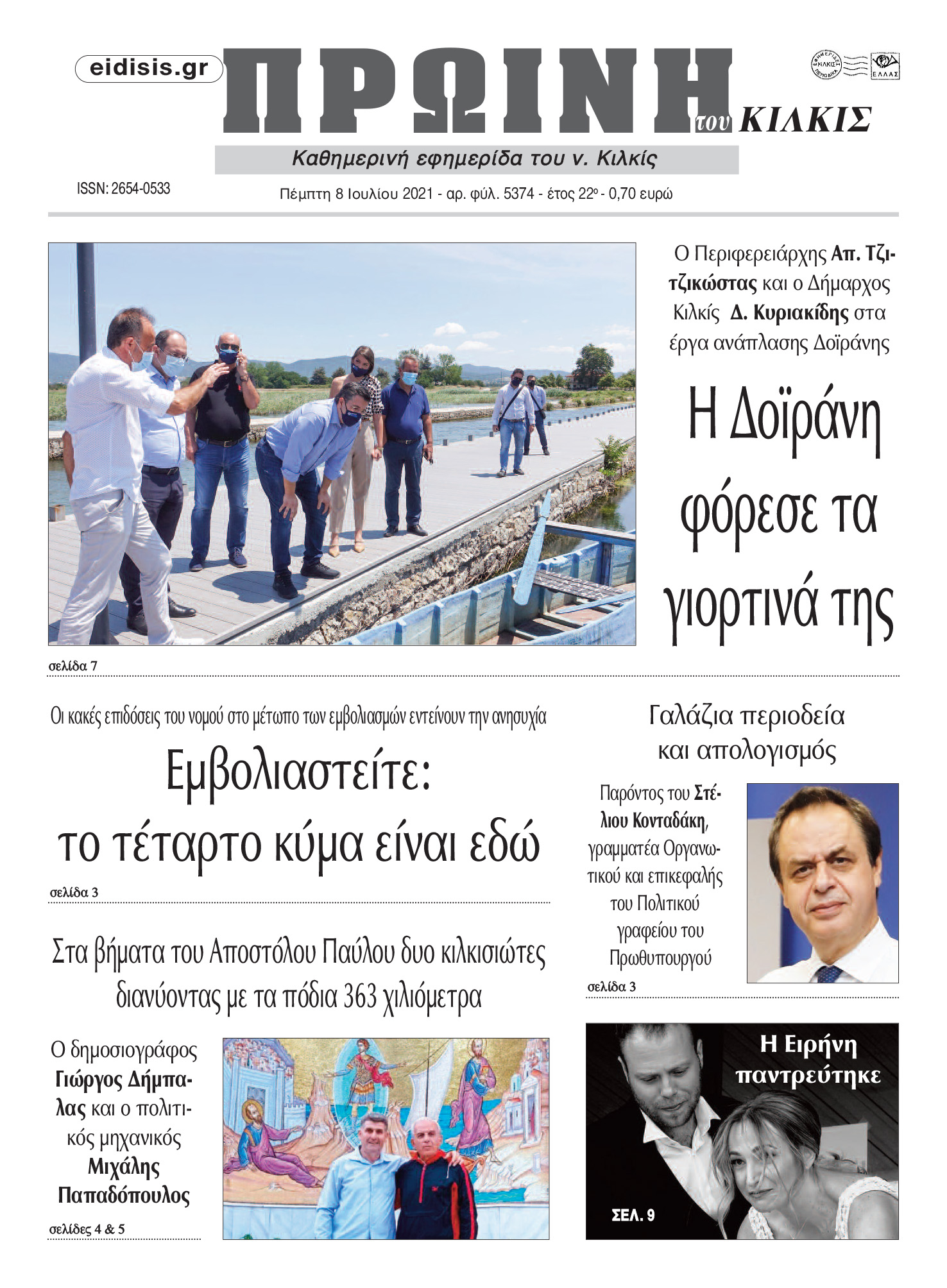 Διαβάστε το νέο πρωτοσέλιδο της Πρωινής του Κιλκίς, μοναδικής καθημερινής εφημερίδας του ν. Κιλκίς (8-7-2021)