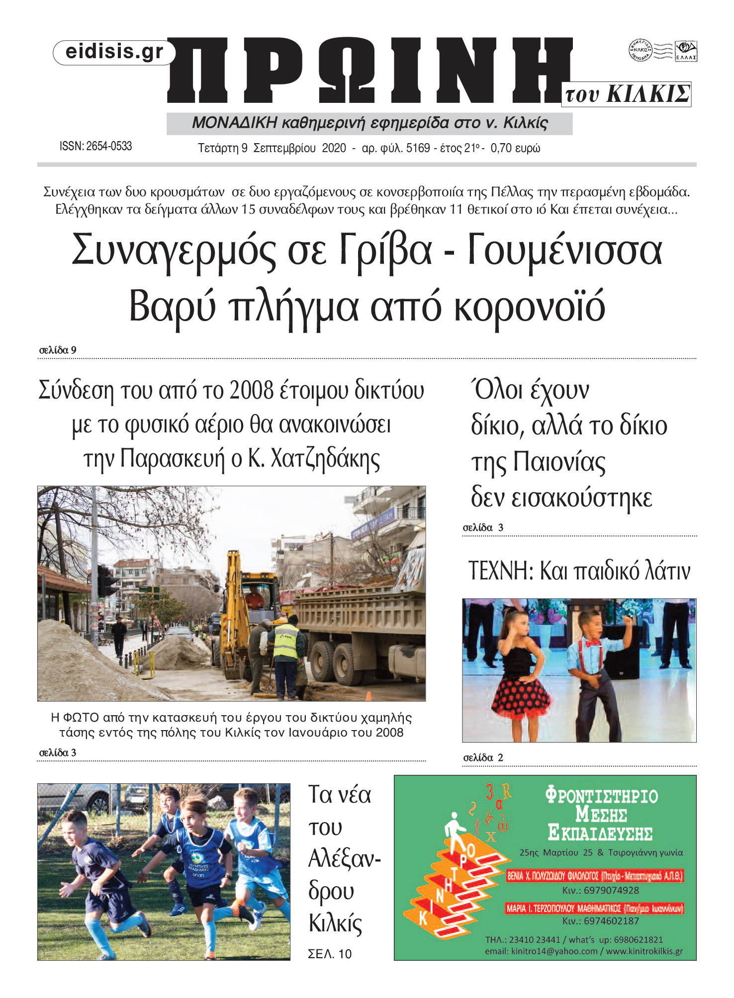 Διαβάστε το νέο πρωτοσέλιδο της Πρωινής του Κιλκίς, μοναδικής καθημερινής εφημερίδας του ν. Κιλκίς (9-9-2020)