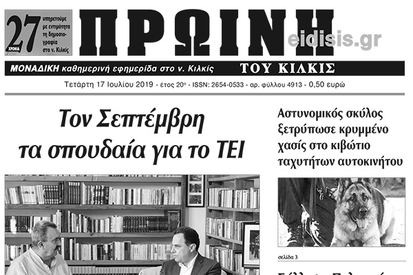 Διαβάστε το νέο πρωτοσέλιδο της Πρωινής του Κιλκίς, μοναδικής καθημερινής εφημερίδας του ν. Κιλκίς