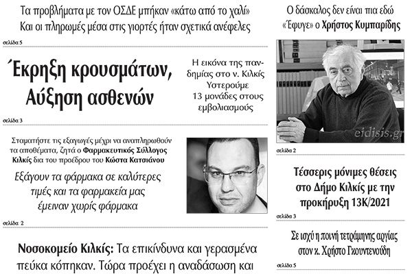 Διαβάστε το νέο πρωτοσέλιδο των ΕΙΔΗΣΕΩΝ, της εβδομαδιαίας εφημερίδας του ν. Κιλκίς (12-1-2022)