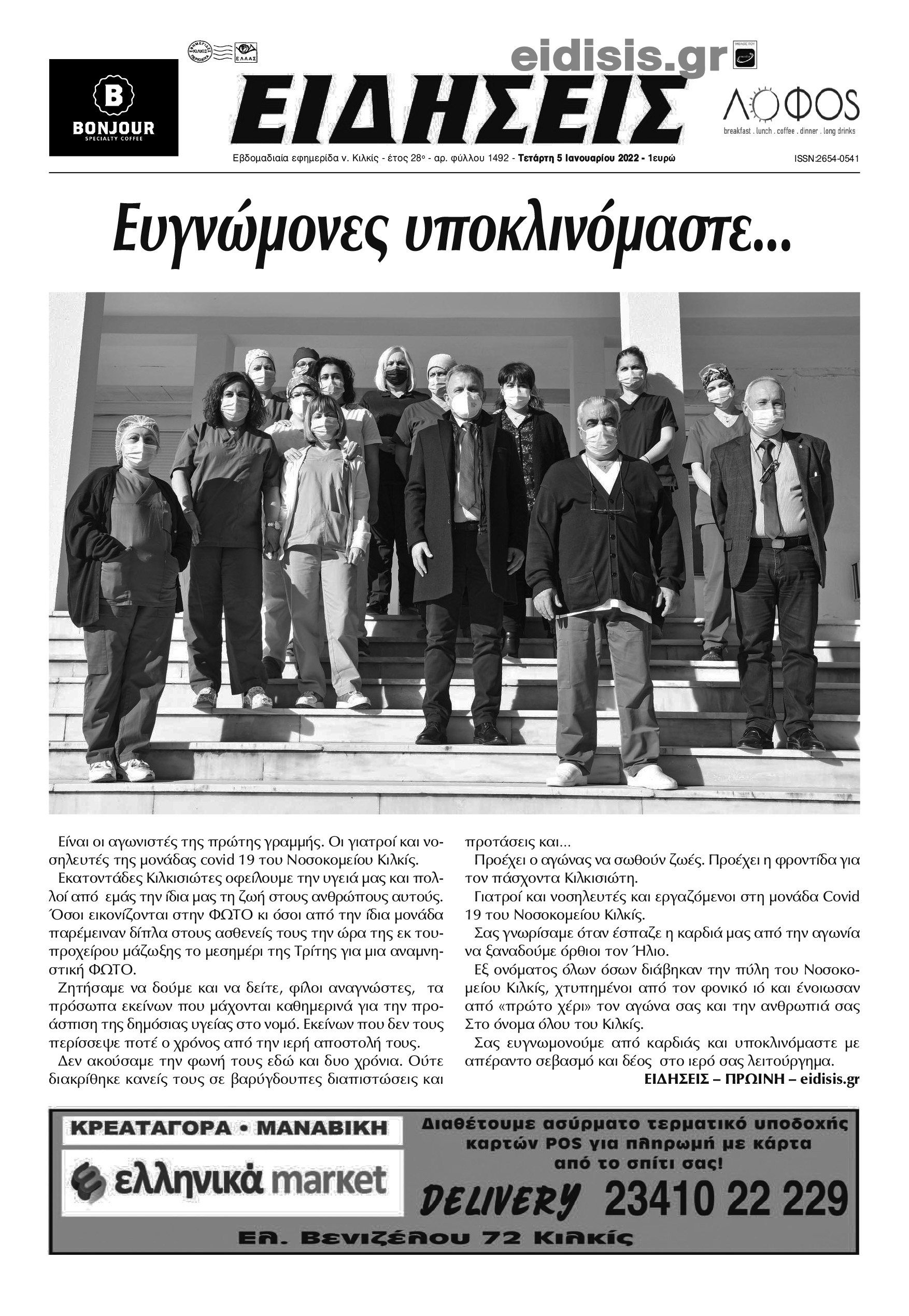 Διαβάστε το νέο πρωτοσέλιδο των ΕΙΔΗΣΕΩΝ, της εβδομαδιαίας εφημερίδας του ν. Κιλκίς (5-1-2022)