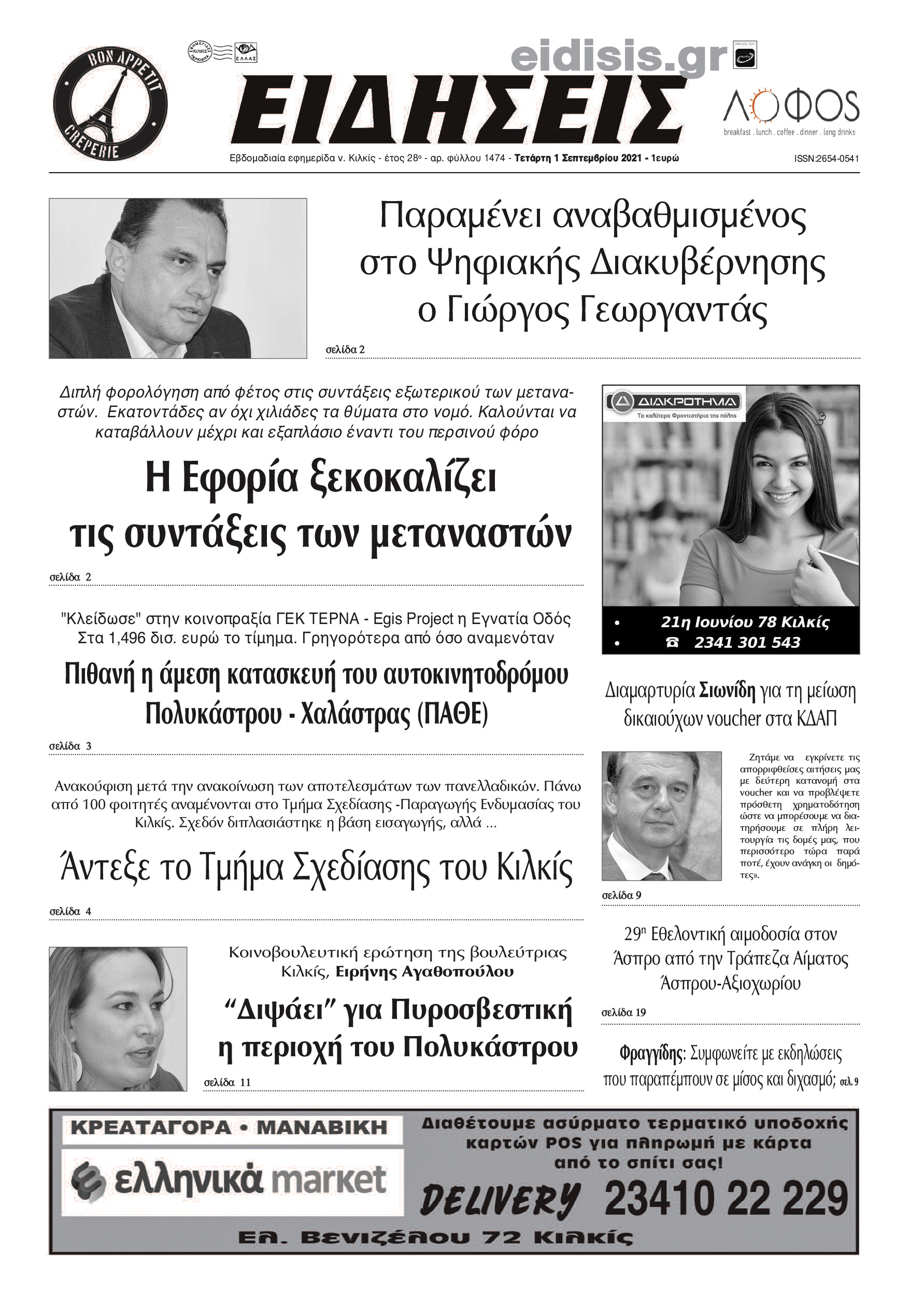 Διαβάστε το νέο πρωτοσέλιδο των ΕΙΔΗΣΕΩΝ του Κιλκίς, της εβδομαδιαίας εφημερίδας του ν. Κιλκίς (1-9-2021)