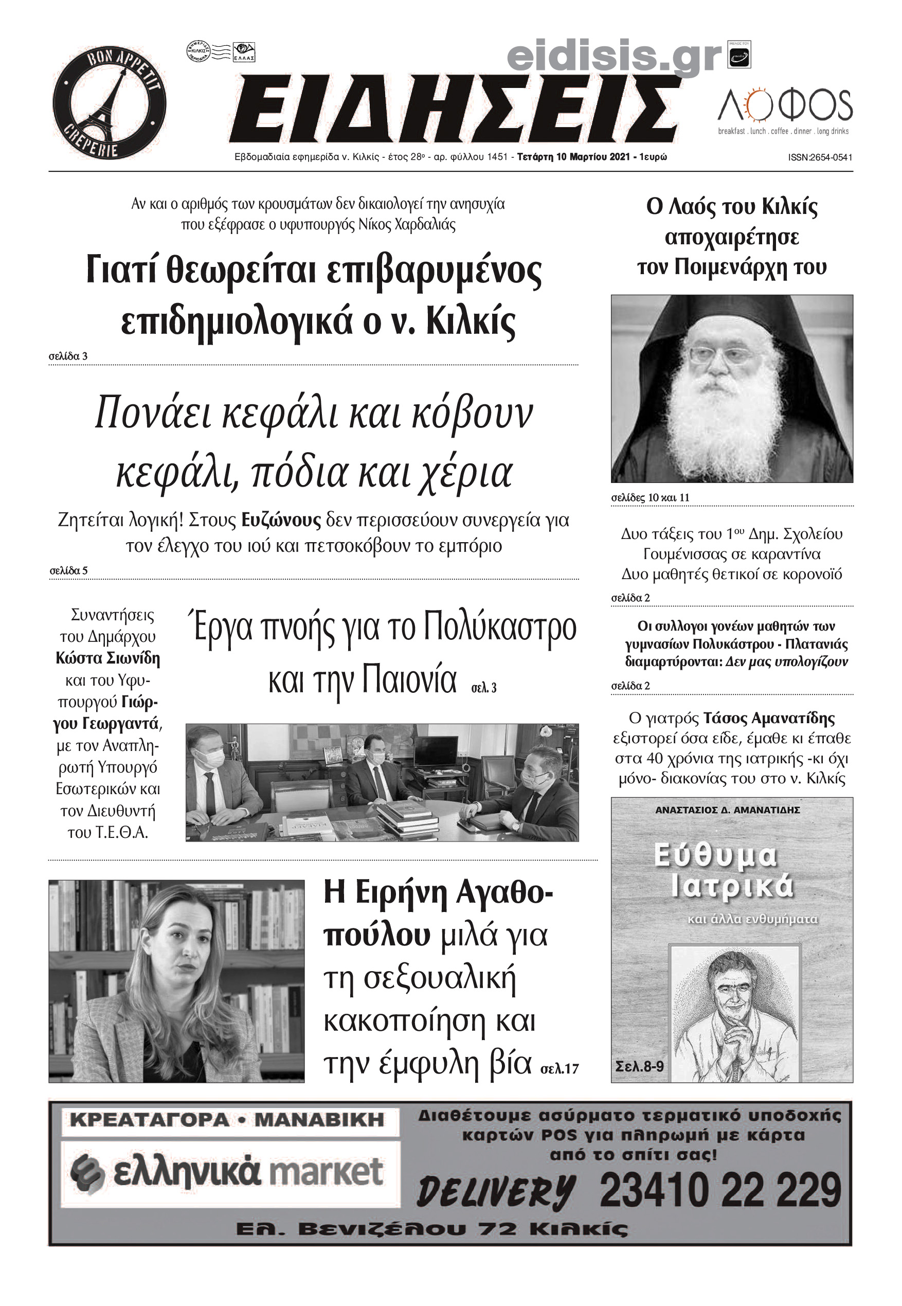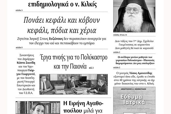 Διαβάστε το νέο πρωτοσέλιδο των ΕΙΔΗΣΕΩΝ του Κιλκίς, της εβδομαδιαίας εφημερίδας του ν. Κιλκίς (10-3-2021)