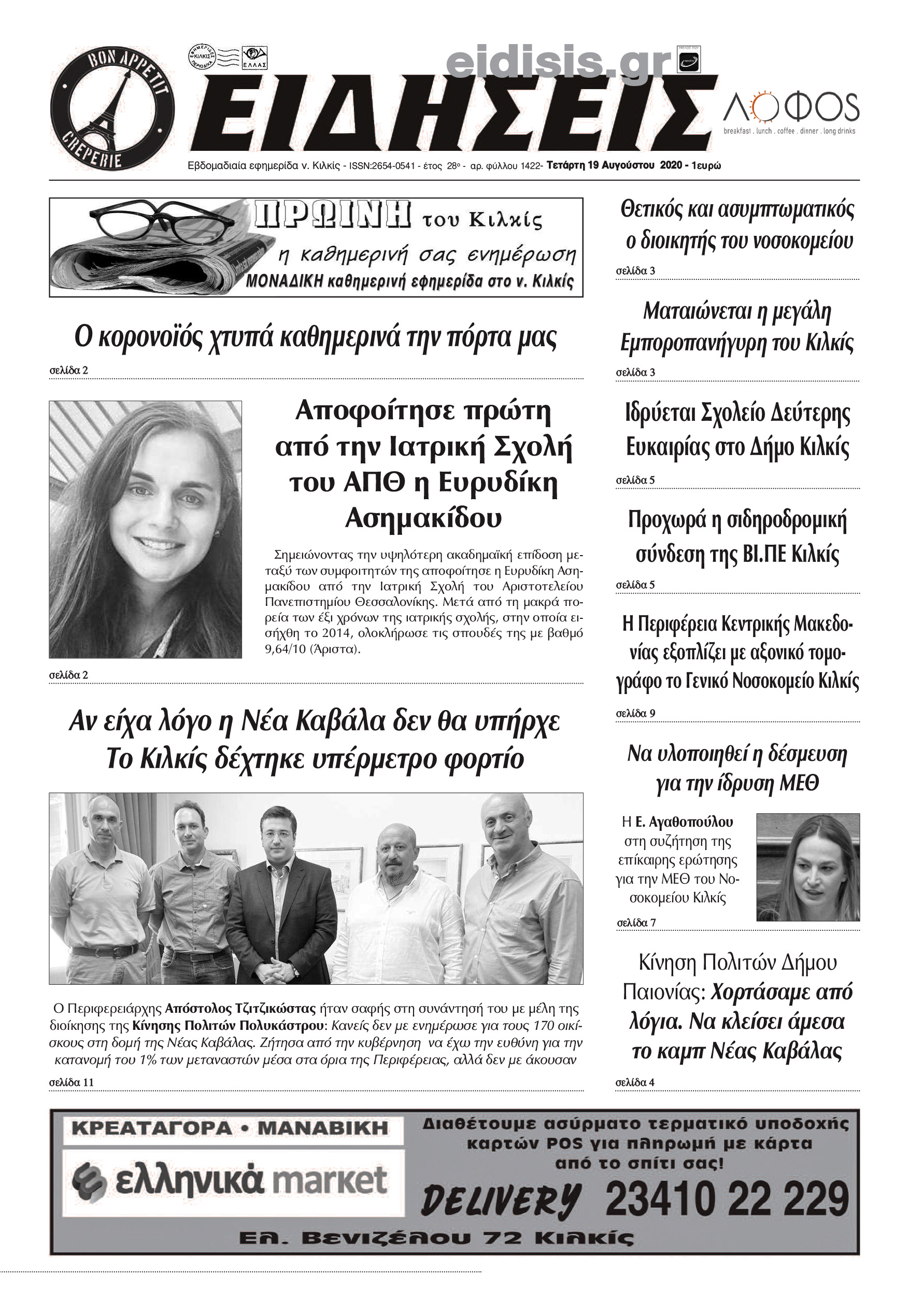 Διαβάστε το νέο πρωτοσέλιδο των ΕΙΔΗΣΕΩΝ του Κιλκίς, της εβδομαδιαίας εφημερίδας του ν. Κιλκίς (19-8-2020)