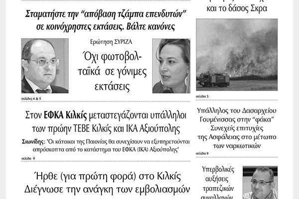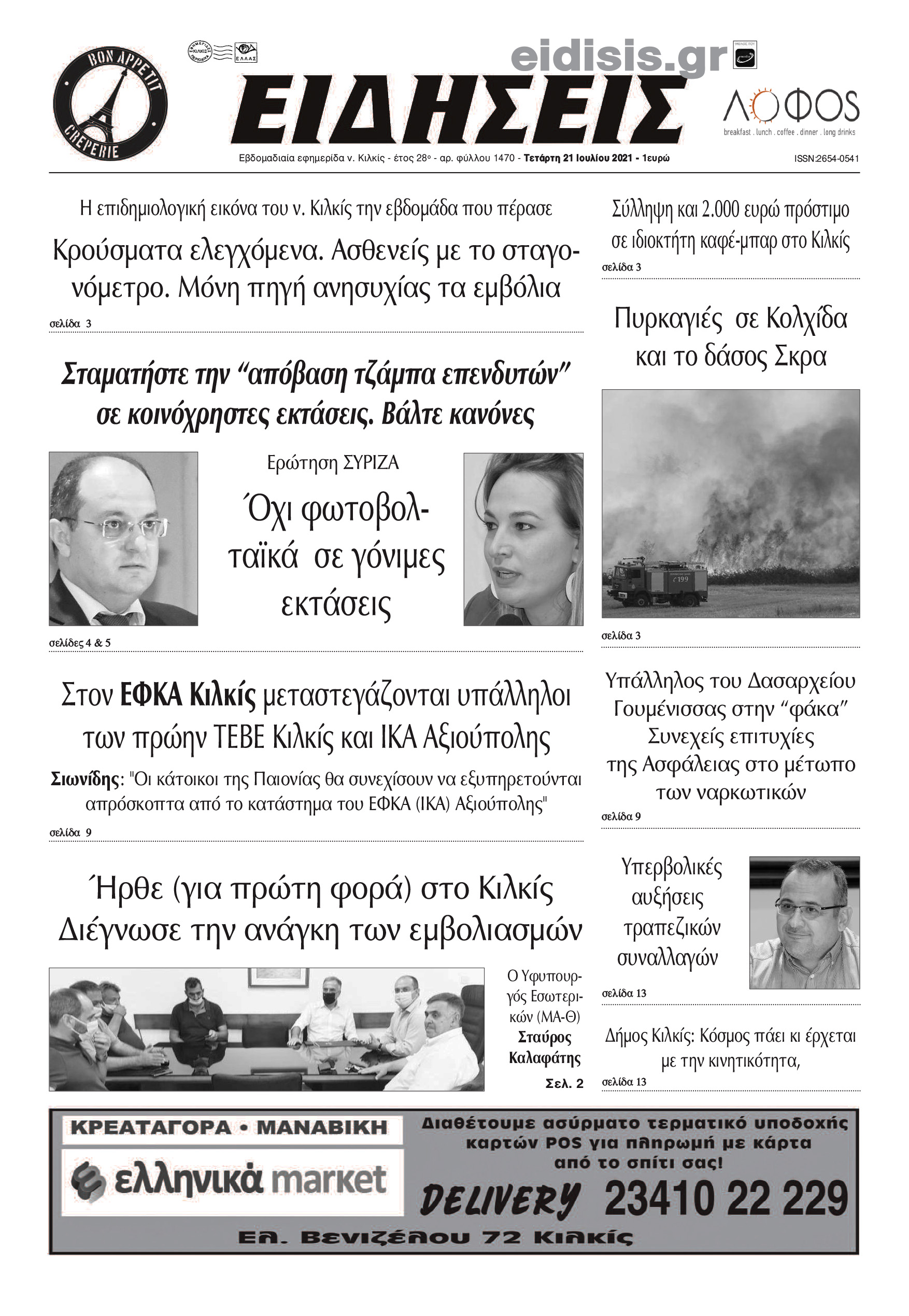 Διαβάστε το νέο πρωτοσέλιδο των ΕΙΔΗΣΕΩΝ του Κιλκίς, της εβδομαδιαίας εφημερίδας του ν. Κιλκίς (21-7-2021)