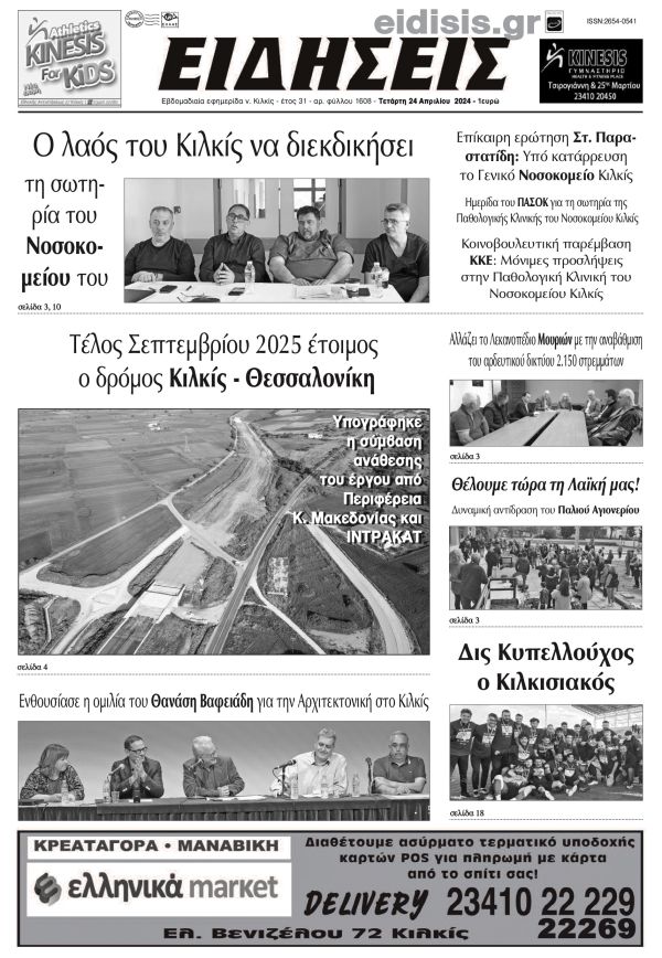 Διαβάστε το νέο πρωτοσέλιδο των ΕΙΔΗΣΕΩΝ του Κιλκίς, της εβδομαδιαίας εφημερίδας του ν. Κιλκίς (24-4-2024)
