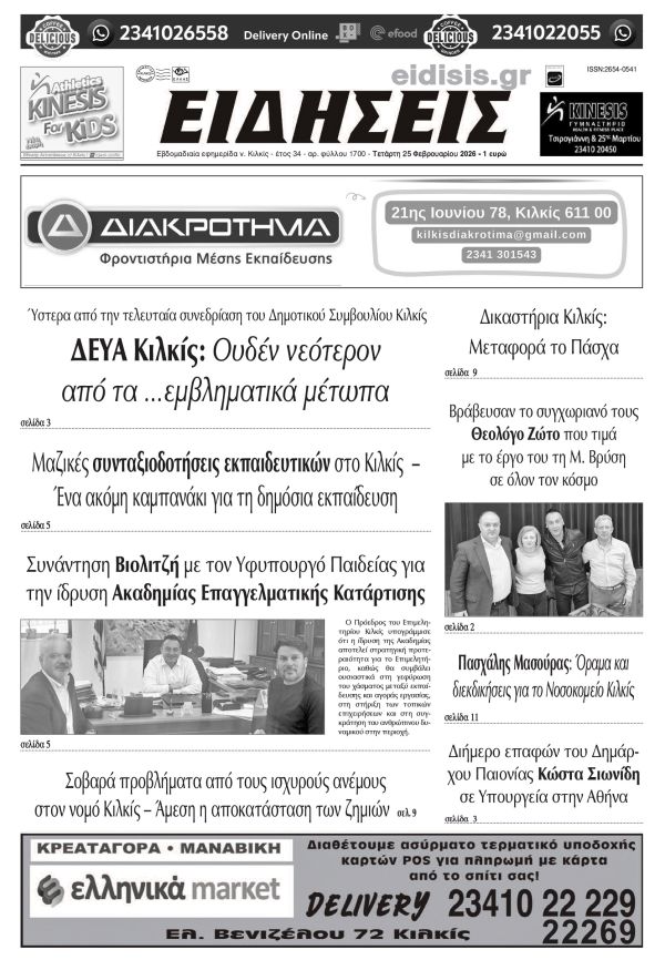 Διαβάστε το νέο πρωτοσέλιδο των ΕΙΔΗΣΕΩΝ του Κιλκίς, της εβδομαδιαίας εφημερίδας του ν. Κιλκίς (25-2-2026)