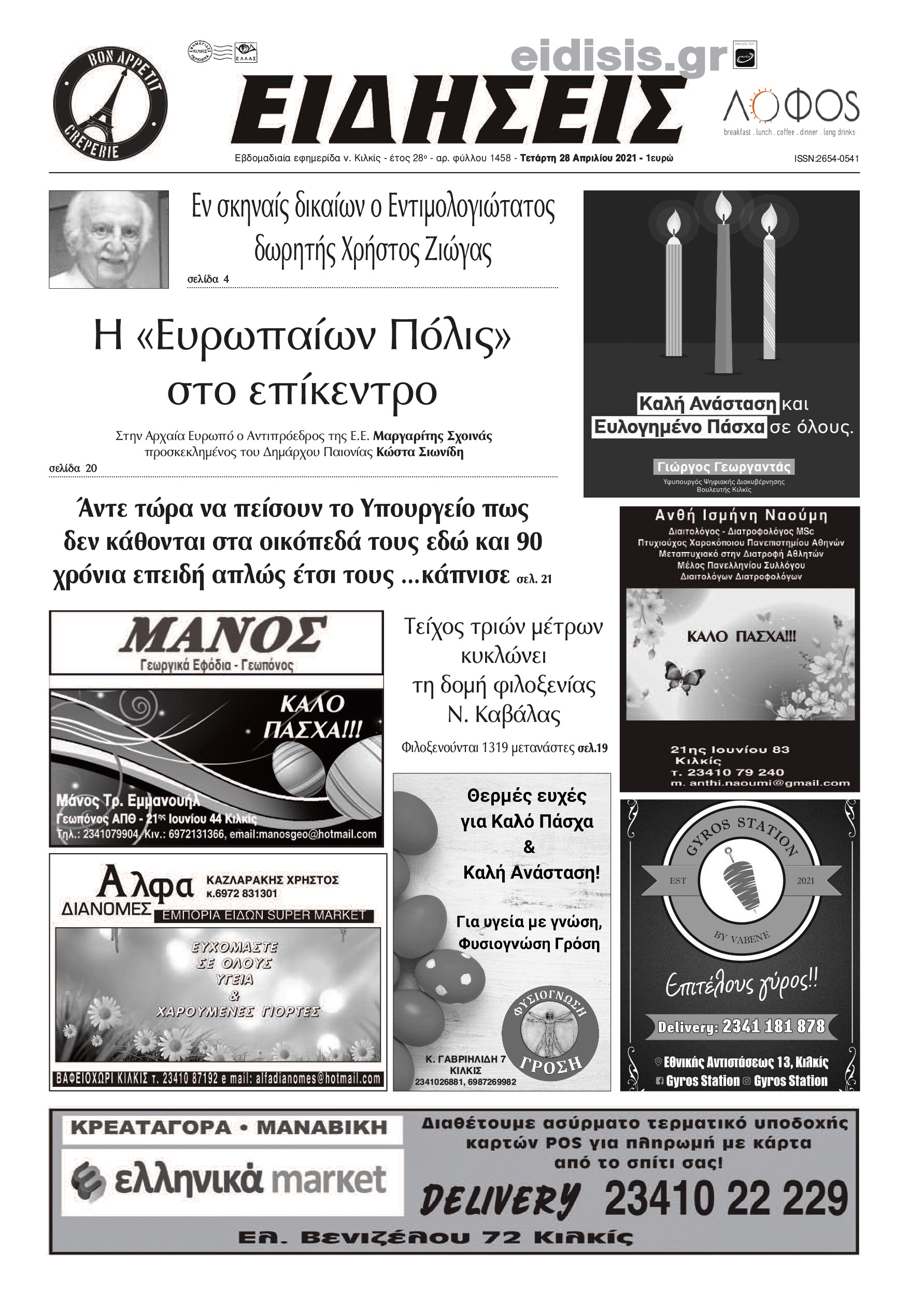 Διαβάστε το νέο πρωτοσέλιδο των ΕΙΔΗΣΕΩΝ του Κιλκίς, της εβδομαδιαίας εφημερίδας του ν. Κιλκίς (28-4-2021)