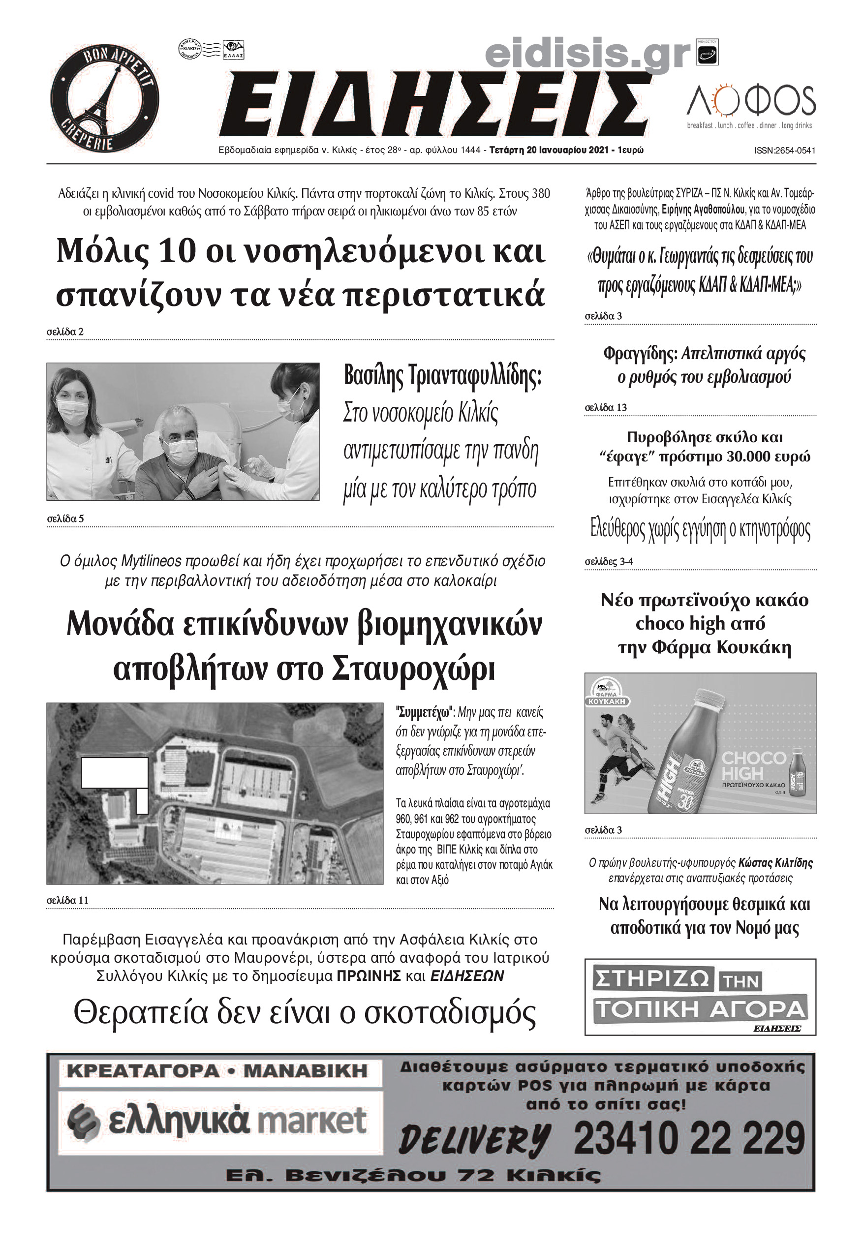 Διαβάστε το νέο πρωτοσέλιδο των ΕΙΔΗΣΕΩΝ του Κιλκίς, της εβδομαδιαίας εφημερίδας του ν. Κιλκίς (29-1-2021)