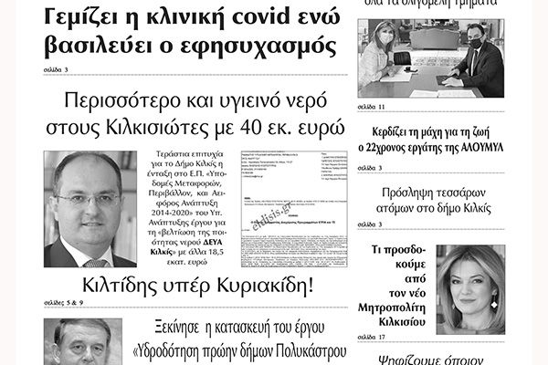 Διαβάστε το νέο πρωτοσέλιδο των ΕΙΔΗΣΕΩΝ του Κιλκίς, της εβδομαδιαίας εφημερίδας του ν. Κιλκίς (29-9-2021)