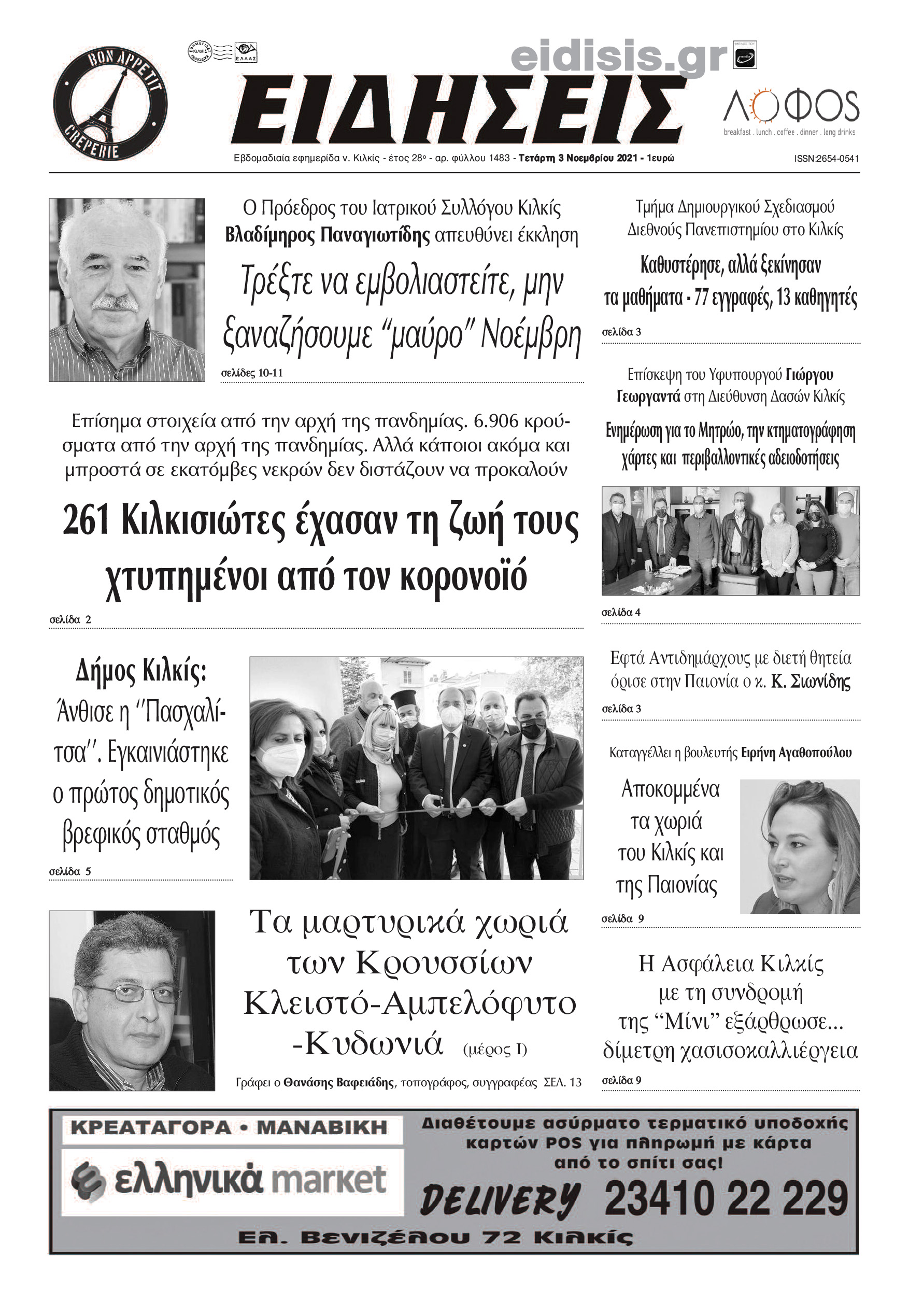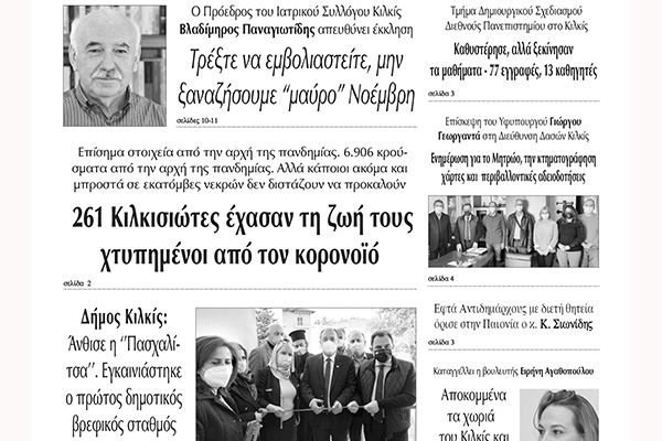 Διαβάστε το νέο πρωτοσέλιδο των ΕΙΔΗΣΕΩΝ του Κιλκίς, της εβδομαδιαίας εφημερίδας του ν. Κιλκίς (3-11-2021)