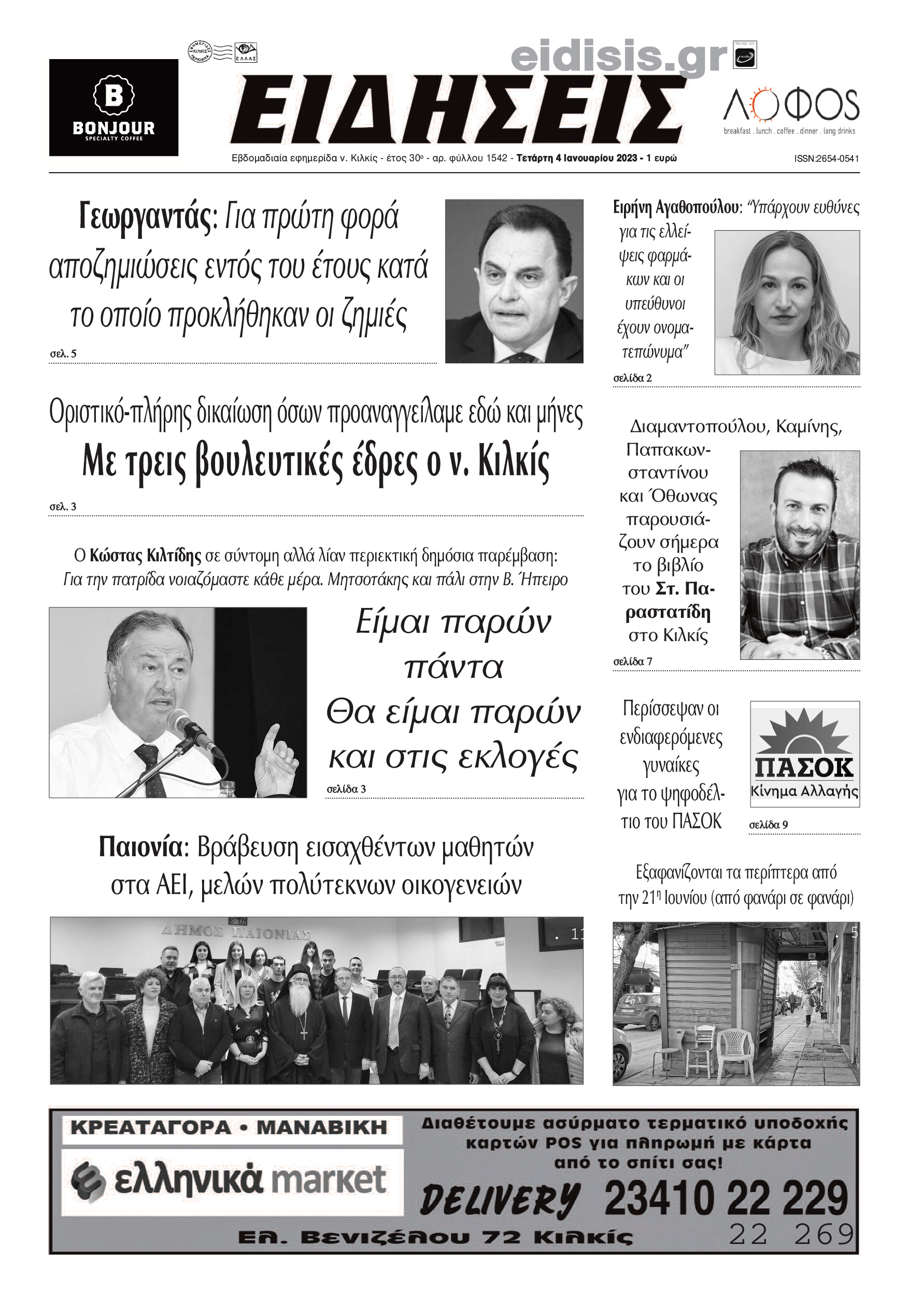 Διαβάστε το νέο πρωτοσέλιδο των ΕΙΔΗΣΕΩΝ του Κιλκίς, της εβδομαδιαίας εφημερίδας του ν. Κιλκίς (4-1-2023)