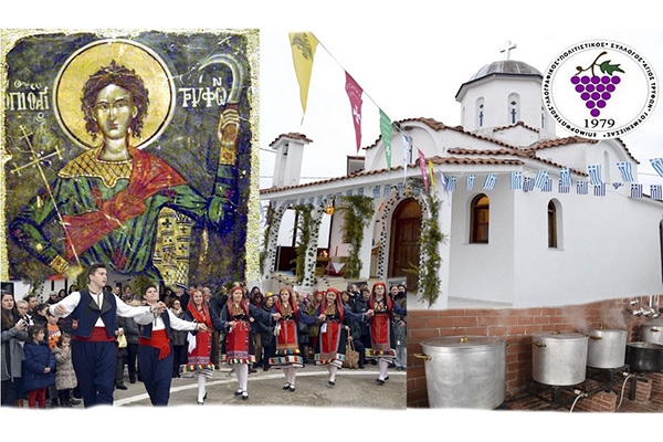 Ο Λαογραφικός Πολιτιστικός Σύλλογος «Άγιος Τρύφων» Γουμένισσας, σας προσκαλεί να παρευρεθείτε την Πέμπτη 01 Φεβρουαρίου 2018, στην Ιερά Πανήγυρη «Κουρμπάνι» του Αγίου Τρύφωνα, προστάτη των αμπελουργών.