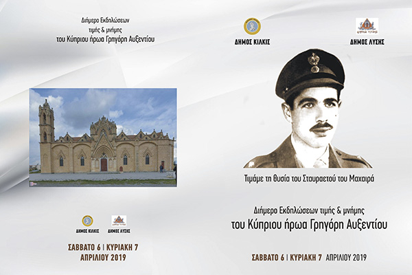 Ο Δήμαρχος Κιλκίς, ο Δήμαρχος Λύσης κ. Ανδρέας Καουρής και το Συμβούλιο Ιστορικής μνήμης ΕΟΚΑ ( 1955- 1959) σας προσκαλούν να τιμήσετε με την παρουσία σας τις διήμερες εκδηλώσεις μνήμης του Κύπριου ήρωα Γρηγόρη Αυξεντίου το Σάββατο και την Κυριακή 7 Απριλίου στο Δήμο Κιλκίς.