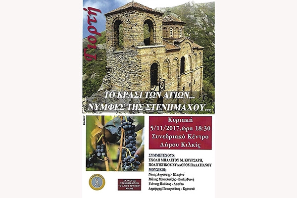 Ο Πολιτιστικός Σύλλογος Στενημαχιτών «ο Άγιος Τρύφων» Κιλκίς διοργανώνει ημερήσια εκδρομή- προσκύνημα, την Κυριακή 12 Νοεμβρίου, στην τίμια κάρα του Αγίου Ραφαήλ στην ιερά μονή Αγίας Παρασκευής, στη Ροδολείβους Σερρών- Δράμα. Τιμή: 12 ευρώ. Δηλώσεις συμμετοχής: 694 267 5176.