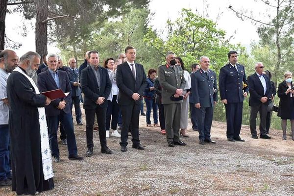 Τελέσθηκε η Πανηγυρική Θεία Λειτουργία και Δοξολογία στον Ιερό Ναό Τιμίου Σταυρού στο Χαμηλό και μετά στο μνημείο της Μάχης του Ραβινέ στο λόφο ακολούθησε Επιμνημόσυνη Δέηση και κατάθεση στεφάνων.