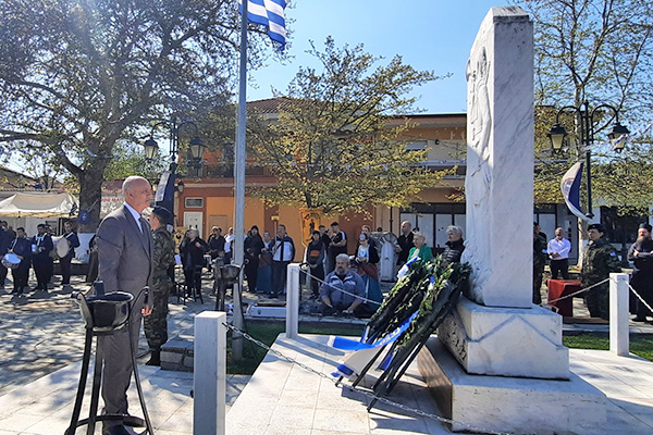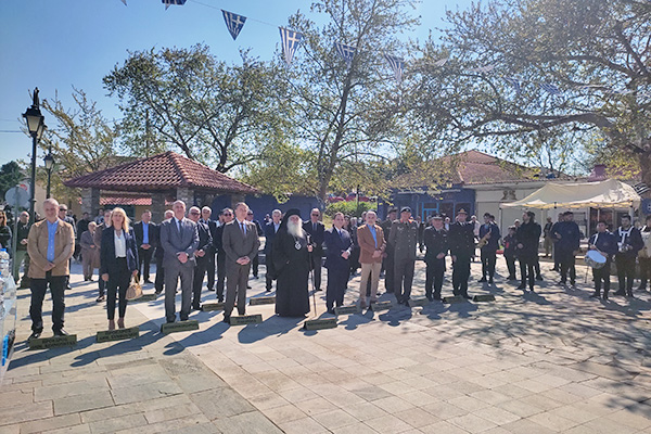 Κατάθεση στεφάνων έκαναν: ο υπουργός Αγροτικής Ανάπτυξης & Τροφίμων Γεώργιος Γεωργαντάς ως εκπρόσωπος της Ελληνικής Κυβέρνησης, ο βουλευτής ΚΙΝΑΛ ΠΑΣΟΚ Κιλκίς Γεώργιος Φραγγίδης για την Βουλή των Ελλήνων, ο Ταξίαρχος της 33ης ΜΚ ΤΑΞ Θεόδωρος Ελευθεριάδης ως εκπρόσωπος του Αρχηγού ΓΕΕΘΑ, ο δήμαρχος Παιονίας Κωνσταντίνος Σιωνίδης, ο αντιπεριφερειάρχης Κιλκίς Ανδρέας Βεργίδης, ο αστυνομικός διευθυντής Κιλκίς Δημήτριος Μικρός, ο υποδιοικητής της Πυροσβεστικής Υπηρεσίας Γουμένισσας Αλέξανδρος Ταρινίδης, ο πρόεδρος του Τοπικού Συμβουλίου Κοινότητας Ευζώνων Νικόδημος Τσανικίδης, ο Πολιτιστικός Σύλλογος Ευζώνων και η νεολαία του χωριού Εύζωνοι.
