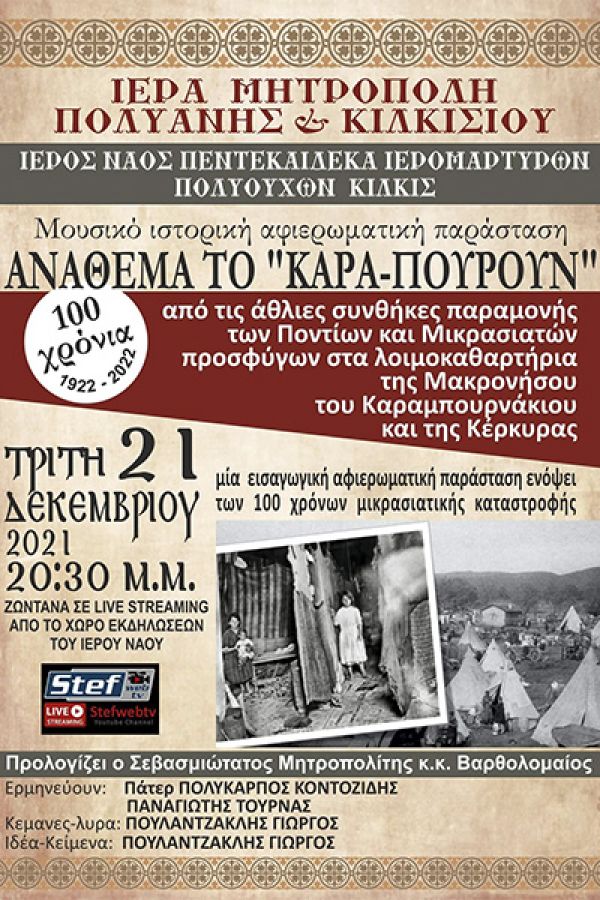 Μια εισαγωγική αφιερωματική παράσταση ενόψει των 100 χρόνων μικρασιατικής καταστροφής. που παραμένει άγνωστη στο ευρύ κοινό