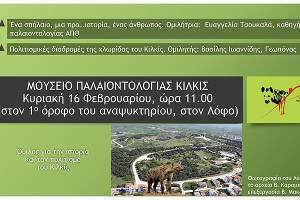 Ο Όμιλος για την Ιστορία και τον Πολιτισμό του Κιλκίς οργανώνει μια ενδιαφέρουσα εκδήλωση στο Μουσείο Παλαιοντολογίας (1ος όροφος αναψυκτηρίου Λόφος), την Κυριακή 16 Φεβρουαρίου και ώρα 11π.μ.
