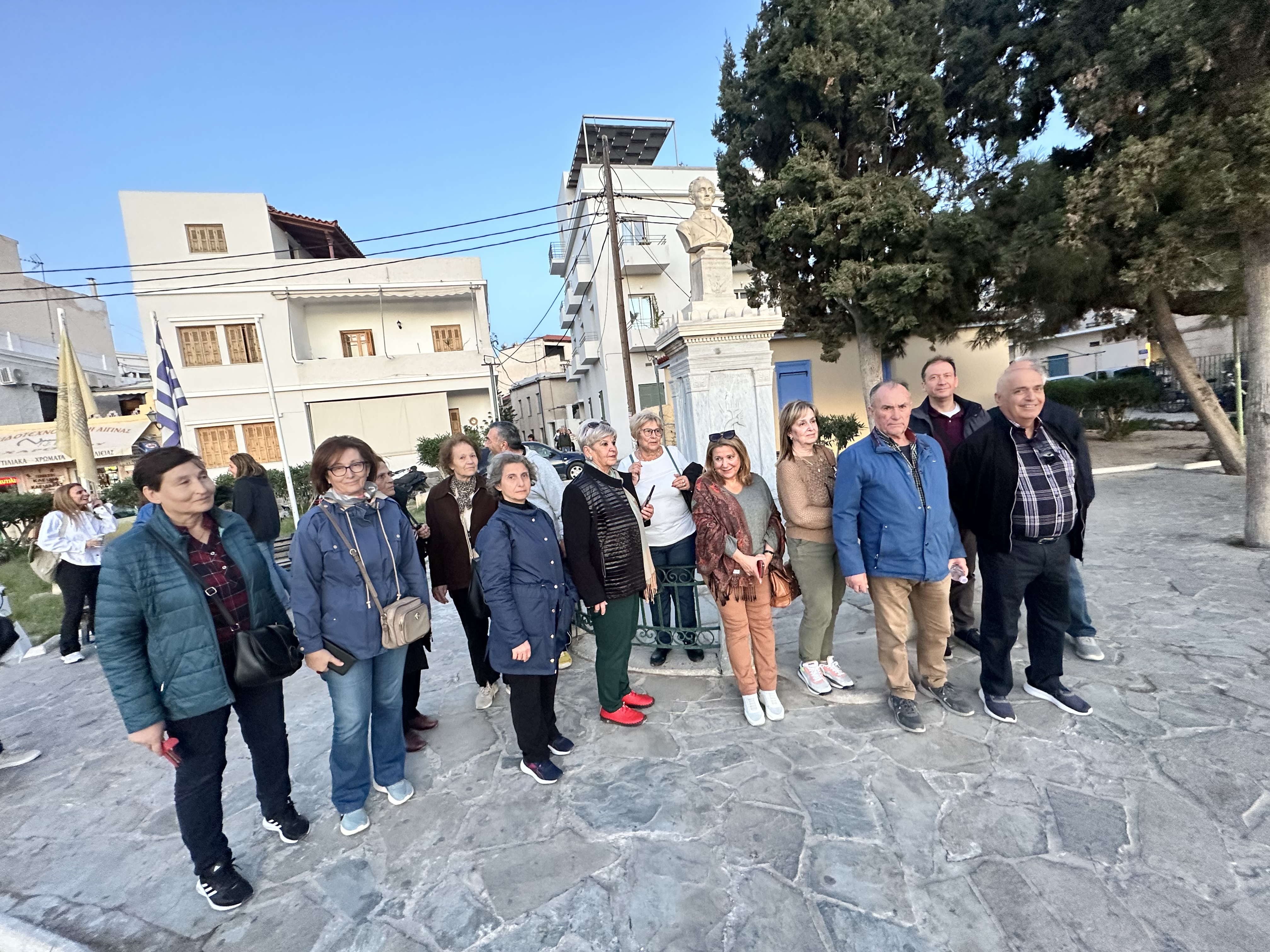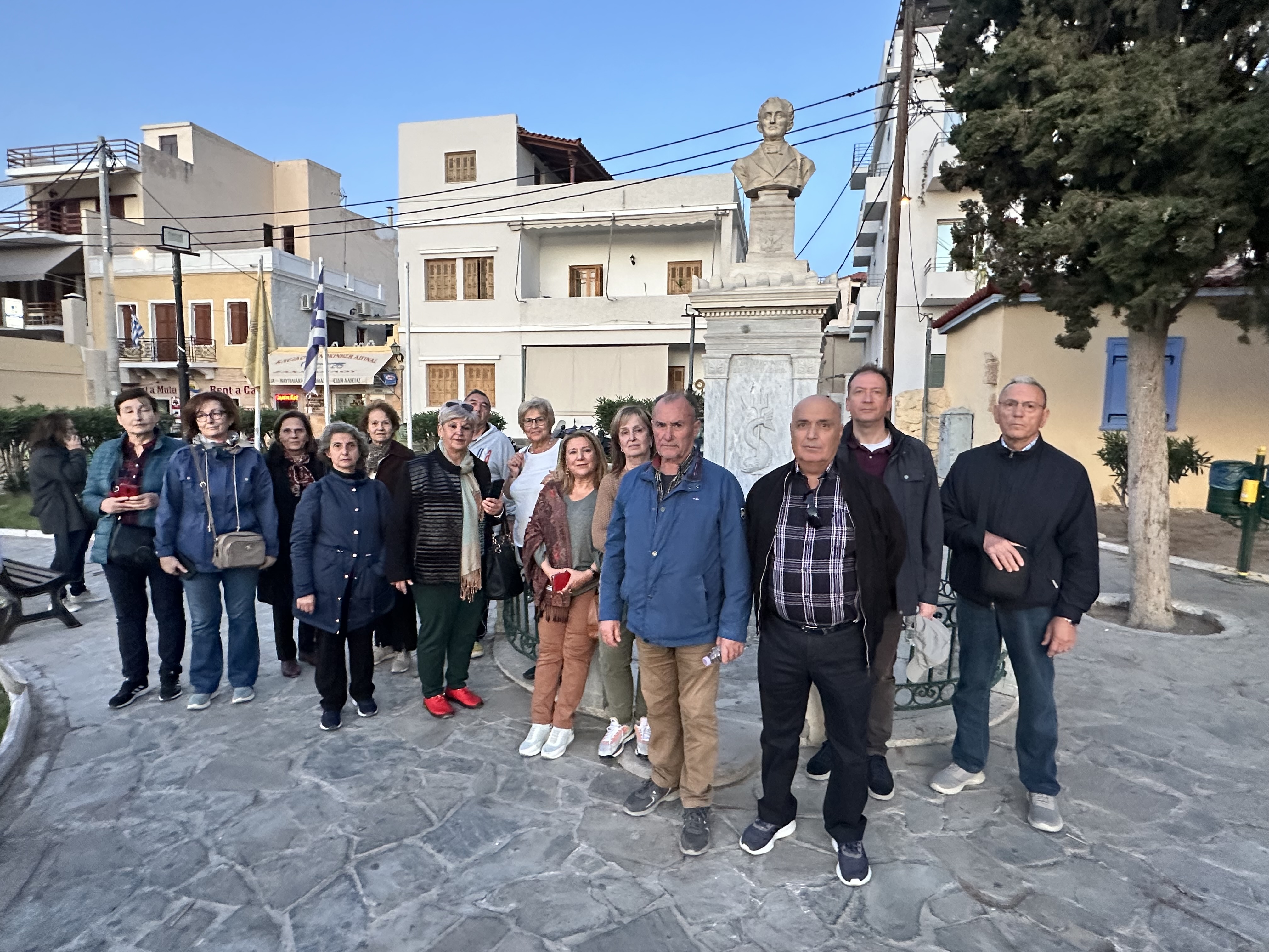 Το βράδυ κατευθύνθηκαν στην παραλιακή Νίκου Καζαντζάκη περνώντας από τον Λόφο Κολώνας, το μπρούτζινο άγαλμα την Μάνας, το σπίτι που έζησε και εμπνεύστηκε ο Νίκος Καζαντζάκης που δυστυχώς πούλησε η αδελφή της πρώτης του γυναίκας Γαλάτειας και ως ιδιωτικό δεν είναι επισκέψιμο και το Αρχαίο κοιμητήριο Αιγινητών Σαλαμινομάχων. Την Κυριακή επισκέφθηκαν τον Ναό και το Μουσείο της Αφαίας που χτίστηκε λίγα χρόνια νωρίτερα από τον Παρθενώνα, τον Άγιο Νεκτάριο, την Πέρδικα και το νησί Μονή με τα ελάφια και τα παγώνια. Στην συνέχεια επισκέφθηκαν το Αρχαιολογικό Μουσείο Κολώνας που είναι το πρώτο μουσείο της χώρας που ίδρυσε το 1829 που Ιωάννης Καποδίστριας, την Κολώνα και τον Ναό του Απόλλωνα στον παρακείμενο ομώνυμο λόφο. Είδαν το Καποδιστριακό Ορφανοτροφείο από το λεωφορείο. Πλήρεις σε εικόνες και γνώσεις για το σπουδαίο νησί της Αίγινας, της πρώτης πρωτεύουσας της χώρας την διετία 1826/27.