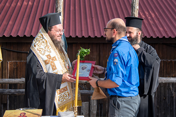 Ο Σεβασμιώτατος ευλόγησε όλα τα παιδιά και τα συνεχάρη για την ενεργό συμμετοχή τους στην προστασία του περιβάλλοντος και στην καλλιέργεια των αρετών, πράττοντας το καθήκον τους και τους παρότρυνε να συνεχίσουν τη δημιουργική ενασχόλησή τους μέσα από την παιδαγωγική μέθοδο που ακολουθούν! Εις ένδειξη σεβασμού και ευγνωμοσύνης ο Αρχηγούς του Συστήματος Ευστάθιος Ιορδανίδης του προσέφερε μία Εικόνα της Παναγίας της Γοργουπηκόου.
