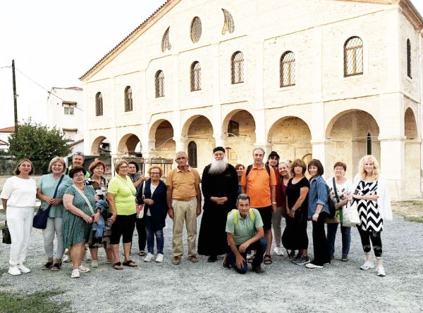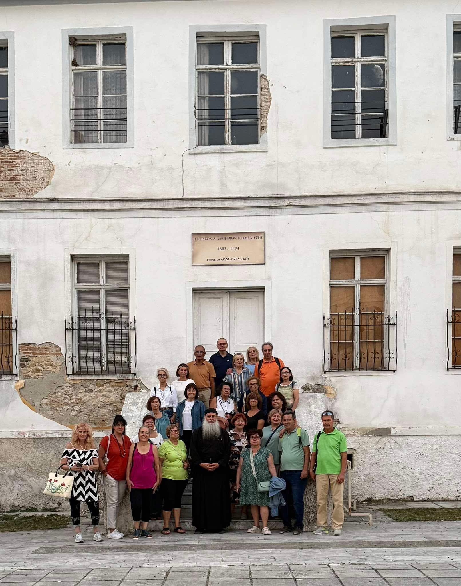 Στο Παλιό Διδακτήριο και τον Άγιο Γεώργιο ξεναγήθηκαν από τον Πατέρα Χριστόδουλο εντυπωσιασμένοι για τον πλούτο σε εικόνες, ιστορία και πολιτισμό της Γουμένισσας.