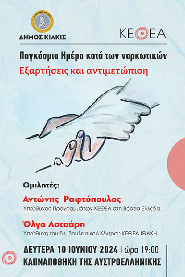 Η εκδήλωση,ενταγμένη στο πρόγραμμα των ‘’Ελευθερίων’’ του Δήμου Κιλκίς, πραγματοποιείται στο πλαίσιο των ενημερωτικών δράσεων του ΚΕΘΕΑ, με ομιλητές