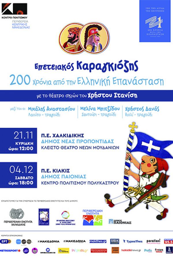 Γνωστές και άγνωστες πτυχές, ντοκουμέντα και αναφορές σε μια σειρά ηρωικών παραστάσεων, βασισμένων σε ιστορικά γεγονότα της περιόδου της Ελληνικής Επανάστασης. Μπροστά από τα μάτια του θεατή παρελαύνουν όλοι οι Ήρωες της Επανάστασης και η σημαντική δράση τους παράλληλα με τους ήρωες του Θεάτρου Σκιών. Εξαιτίας της πολυπλοκότητας της σκηνικής δράσης, οι συγκεκριμένες παραστάσεις παρουσιάζονται σπάνια.