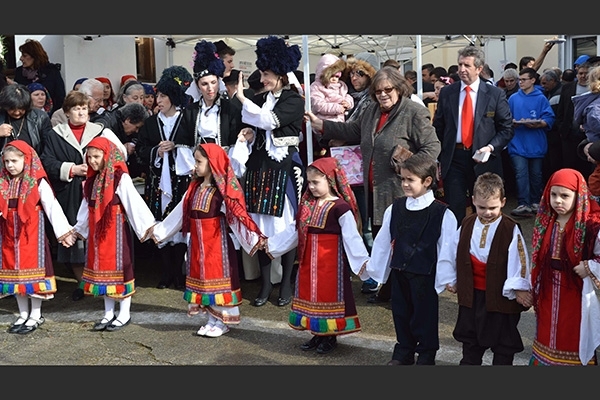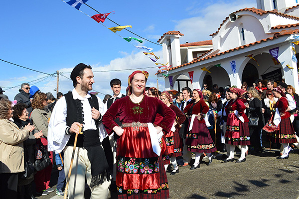 Η γραμματέας κ. Ραφαηλία Παπανικολάου αναφέρθηκε σ’ ένα σύντομο ιστορικό του εθίμου και παρουσίασε τα χορευτικά τμήματα των Πολιτιστικών συλλόγων: Αγίου Τρύφωνα, «Ανθοχωρίου» Μετσόβου, «Πλατανότοπου» Καβάλας, «Άγιος Γεώργιος» Βαφειοχωρίου Κιλκίς, «Καλαμπακίου» Δράμας.