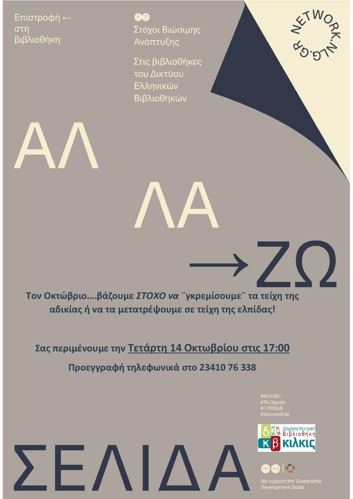 Τηλέφωνο επικοινωνίας: 2341076338, Ιστοσελίδα: vivl-kilkis.kil.sch.gr, Email: vivlkilk@sch.gr, Facebook: www.facebook.com/LibraryKilkis.