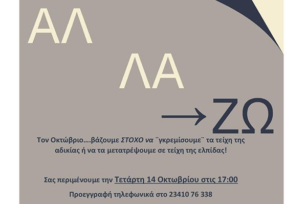Η πρώτη δράση θα πραγματοποιηθεί την Τετάρτη 14 Οκτωβρίου στις 17:00 με περιορισμένο αριθμό παιδιών, τηρώντας όλους τους ενδεδειγμένους κανόνες υγιεινής.