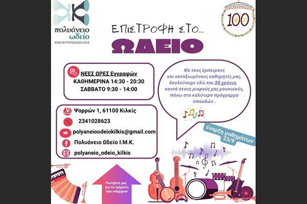 Από Δευτέρα 16 Σεπτεμβρίου 2024 επιστρέφουμε στο κανονικό πρόγραμμα λειτουργίας του ωδείου.