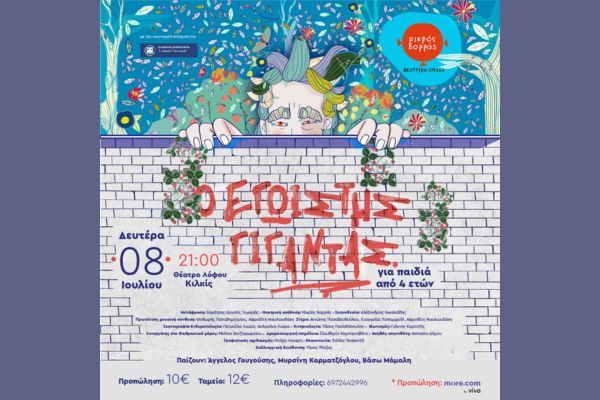 >>Η παράσταση “Ο Εγωιστής Γίγαντας” πραγματοποιείται υπό την αιγίδα και με την οικονομική υποστήριξη του Υπουργείου Πολιτισμού<<
