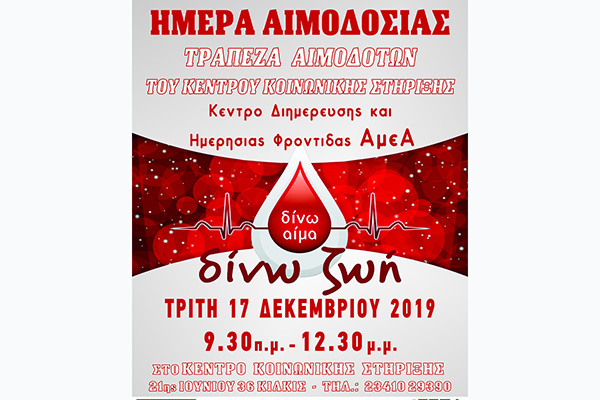 Ετήσια αιμοδοσία του Κέντρου Κοινωνικής Στήριξης στις 17/12/2019