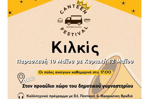 Το Φεστιβάλ Καντίνας σταθμεύει και στην πόλη μας το τριήμερο 10 – 12 Μαϊου και θα είναι επισκέψιμο για το κοινό από τις 17:00 έως τις 00:00, προσδοκώντας να την καταστήσει προορισμό εκλεκτών γεύσεων για ντόπιους και επισκέπτες.
