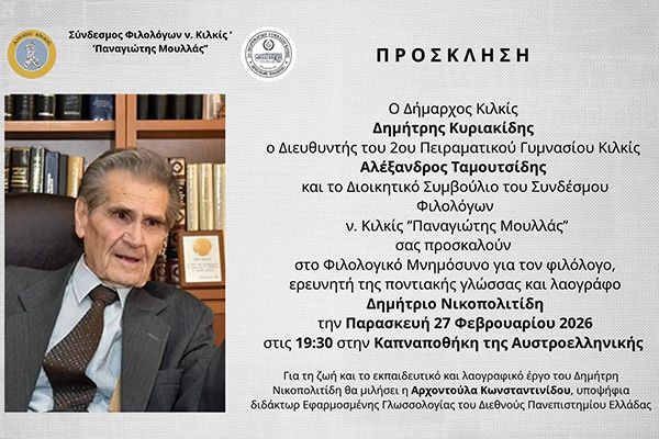 Για το έργο του θα μιλήσει η Αρχοντούλα Κωνσταντινίδου, υποψήφια δρ. Εφαρμοσμένης Γλωσσολογίας του Διεθνούς Πανεπιστημίου Ελλάδας. Ο Δημήτριος Νικοπολιτίδης υπηρέτησε με αγάπη και ζήλο τα ελληνικά γράμματα διδάσκοντας σε εξατάξια Γυμνάσια της Ελλάδας και ολοκλήρωσε τον κύκλο της εκπαιδευτικής του διαδρομής ως Λυκειάρχης στο 2ο Πειραματικό Λύκειο Κιλκίς, από όπου και συνταξιοδοτήθηκε.Από νεαρή ηλικία ασχολήθηκε επισταμένως με την καταγραφή της ιστορίας και των παραδόσεων του Ποντιακού Ελληνισμού και διακρίθηκε τόσο από την τοπική κοινωνία του Κιλκίς όσο και πανελληνίως για τη συμβολή του στη διάδοση του πολιτισμού, της ιστορίας και των παραδόσεων του Πόντου. Η επιτομή της συγγραφικής του δραστηριότητας, που θεωρείται και έργο ζωής, είναι το Λεξικό της Ποντιακής Διαλέκτου, ένα πολύτιμο εφόδιο γνώσης και εκπαίδευσης, για το οποίο αφιέρωσε πάνω από δεκαπέντε χρόνια δουλειάς.