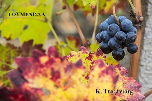 Ξεχασμένες ρώγες μαβιές και στυφές, κρυμμένες στα πορφυρά αμπελόφυλλα του φθινοπώρου, αφημένες ελπίδες των καιρών στο αμπελοτόπι της Γουμένισσας, στις πλαγιές του Πάικου.
