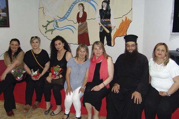 Η αποκάλυψη μίας ποντιακής απεικόνισης στον τοίχο από τον παπα-Γιάννη που όπως είπε φιλοτεχνήθηκε με τη μέριμνα γυναικών τις οποίες όρισε να έχουν την ευθύνη της αίθουσας προκάλεσε έντονα χειροκροτήματα.