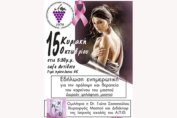 Γουμένισσα: Eκδήλωση ενημέρωσης και πρόληψης για τον Καρκίνο του Μαστού