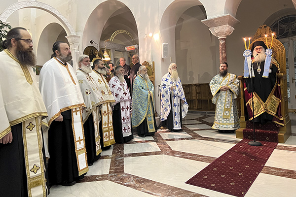 Με αυτήν την αίσθηση παραμονή της εορτής τελέσαμε τη θεία Λειτουργία και το Μεγ. Αγιασμό στην έδρα της Μητροπόλεώς μας και το εσπέρας προέστημεν πάλι σε εσπερινή εόρτια σύναξη με τους Κληρικούς μας στο πλατυνόμενο Πολύκαστρο, στον ιερό Ναό της Αγίας Τριάδος, ειπόντες τα προς εορτήν εφόδια.
