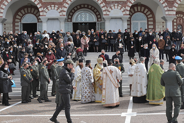Επακολούθησε δεξίωση στο παρακείμενο ενοριακό Κέντρο, όπου ο Σεβασμιώτατος ενημέρωσε δι᾽ ολίγων και για την εκκλησιαστική κατάσταση στην Ουκρανία, περί της οποίας επανειλημμένα τοποθετήθηκε επίσημα και δημόσια. Τόνισε μάλιστα πως κάθε ενδοεκκλησιαστική ρήξη συνακολουθείται κι από πολιτικές και πολιτειακές εντάσεις και πολέμους. «Αυτό μπορεί να ερμηνεύεται αντίστροφα από την κρατούσα λογική, με την έννοια ότι μεθοδευόταν μια επιπλέον ερμηνεία του πολέμου με αιτιογένεση και στην εκκλησιαστική ένταση· η αλήθεια όμως του πνευματικού νόμου είναι ρεαλιστικότερη», είπε ο Σεβασμιώτατος.