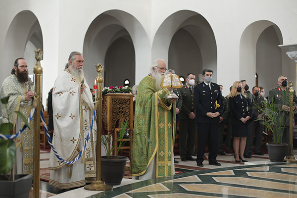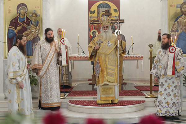 Στην ιερουργία ο Ποιμενάρχης μας συνυπουργείτο από τον ηγούμενο της Ι.Μονής Αγίων Ραφαήλ, Νικολάου και Ειρήνης Γρίβας αρχιμ. Βησσαρίωνα Βάσσου, τους εφημερίους π. Εμμανουήλ Λεβαντή και π. Αθανάσιο Παπαδόπουλο, και τους ιεροδιακόνους π. Μιχαήλ, π. Ραφαήλ και π. Σεραφείμ.