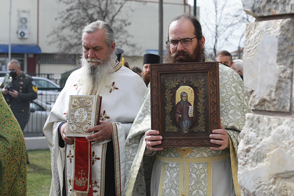 Με το πέρας της θείας Λειτουργίας, έγινε η λιτανεία των ιερών εικόνων πέριξ του μεγαλοπρεπούς ναού, με τους ιερείς βαστάζοντες τις εικόνες και τους τοπικούς άρχοντες επίσης βαστάζοντες εικονίσματα που τους επιδόθηκαν κατά το ειωθός.