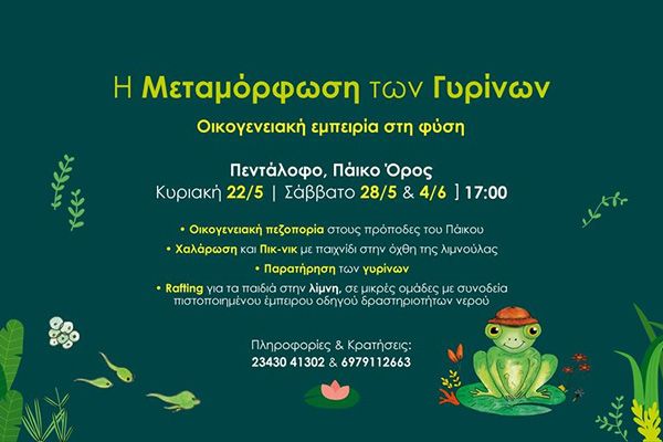 • Παρατήρηση των γυρίνων και εξοικείωση μικρών και μεγάλων με την Μεταμόρφωση!